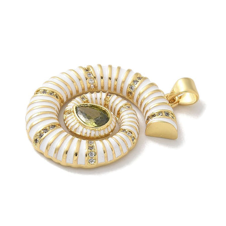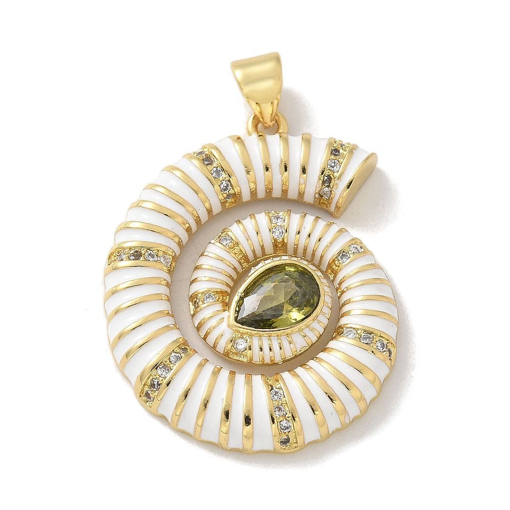 18k Gold Plated Beige Shell Pendant with Green Zirconia 30mm, 1pc