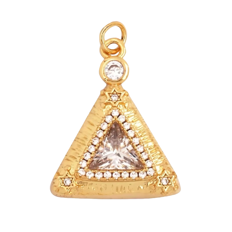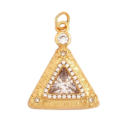 18k Gold Plated Flat Triangle Pendant With Zirconia 22mm, 1pc