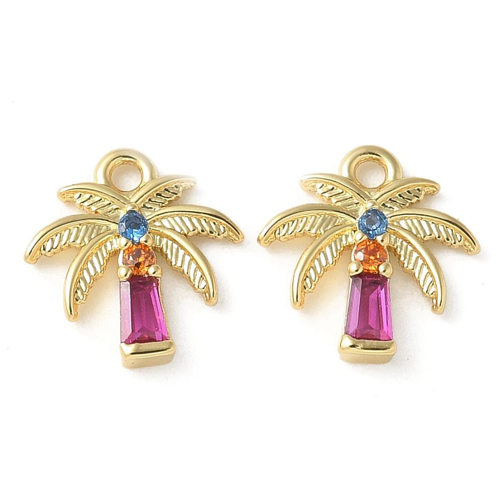 18k Gold Plated Palm Tree Pendant with Zirconia 9.5mm, 1pc