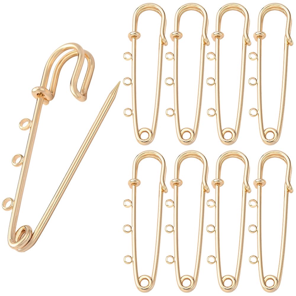 18k Gold Plated Safety Pin with 3 Loops 50mm, 1pc