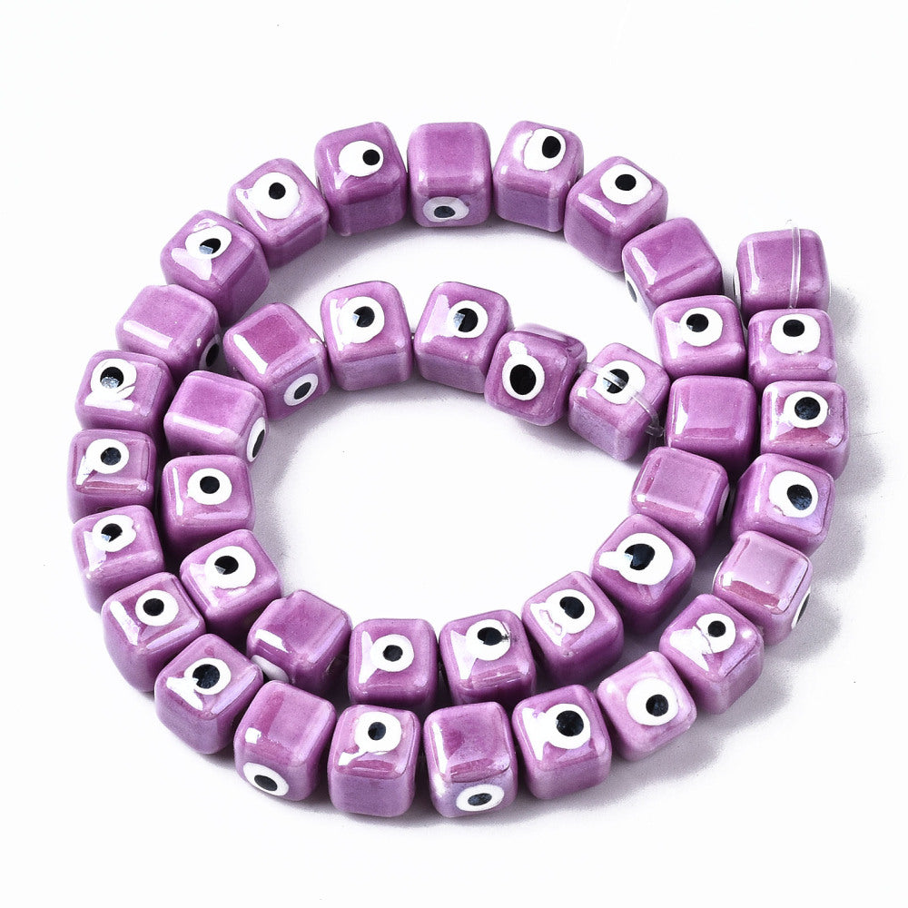 Hebra de cuentas de cubo de porcelana de mal de ojo púrpura