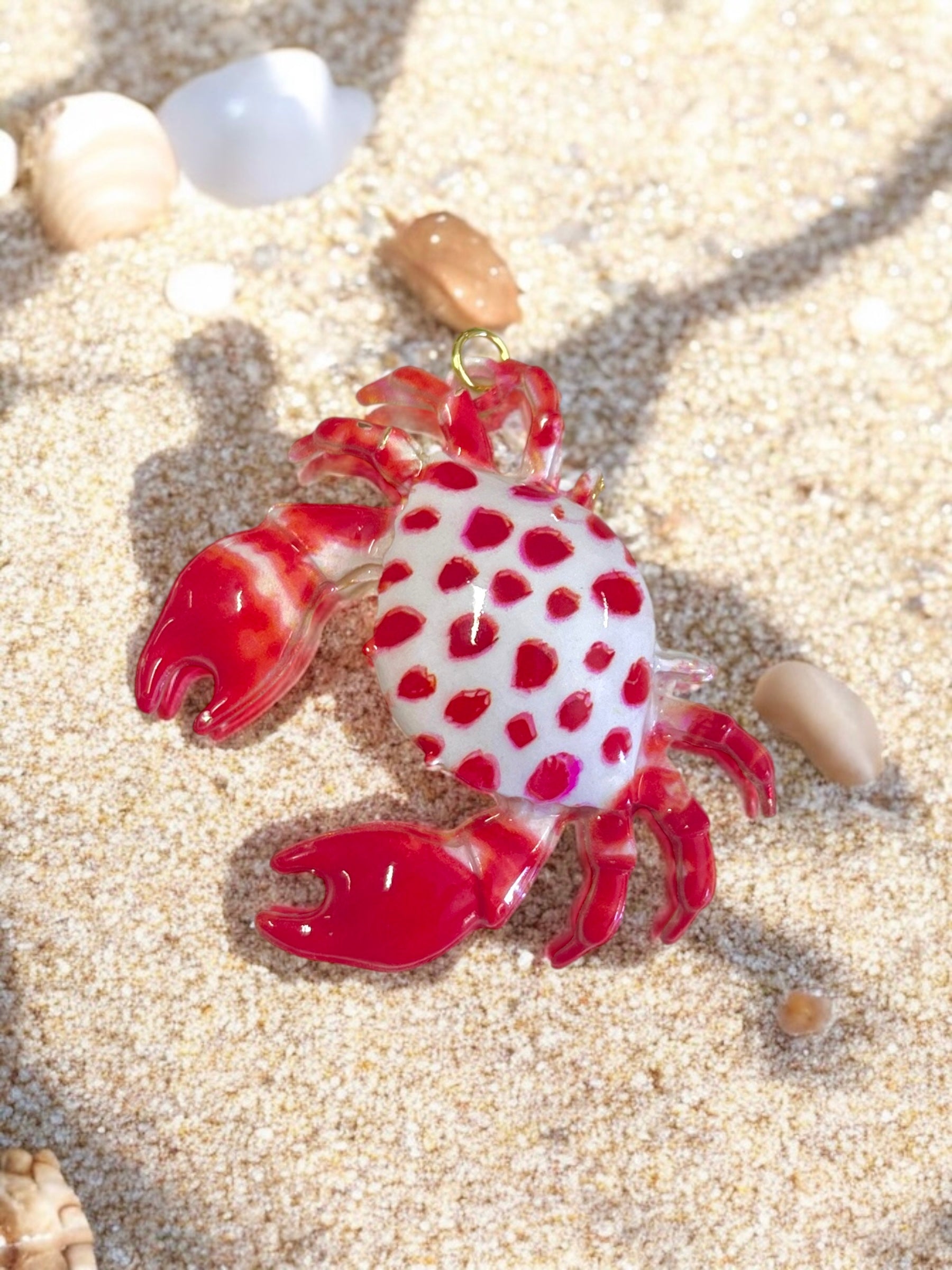 Red and White Enameled Crab Pendant 68mm, 1pc