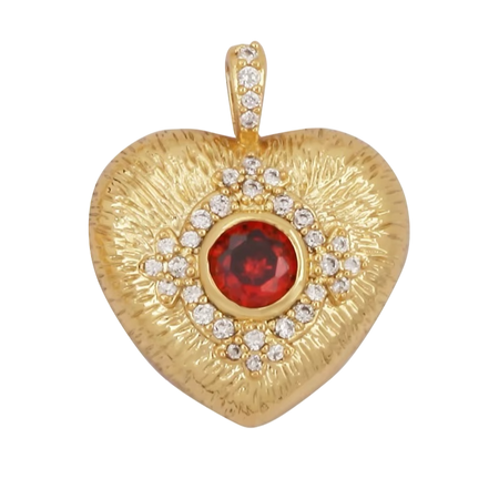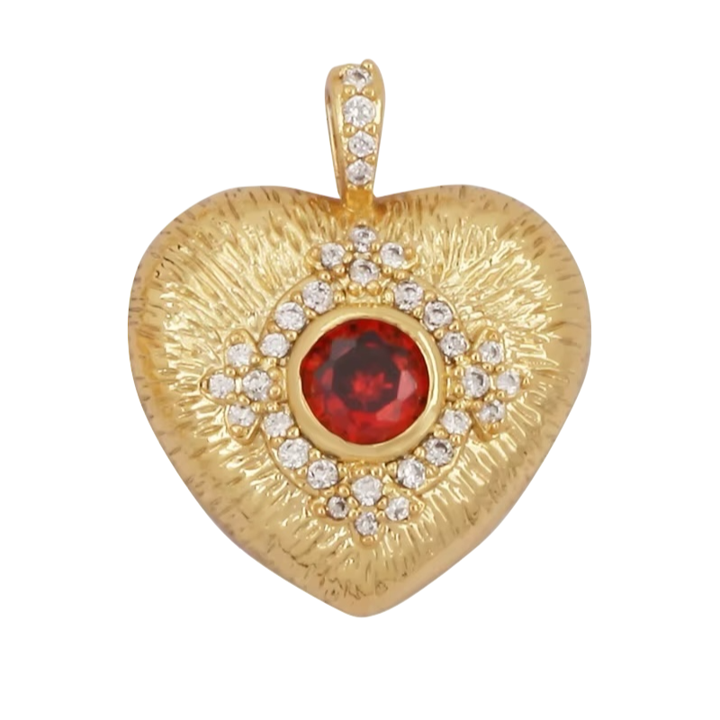 18k Gold Plated Heart Pendant With Red Zirconia 21mm, 1pc