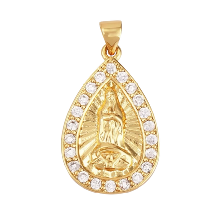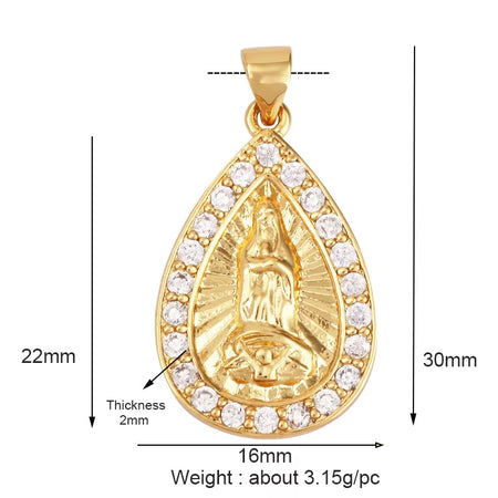 18k Gold Drop Virgin Pendant with Zirconia 30mm, 1pc