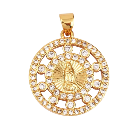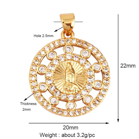 18k Gold Flat Round Virgin Pendant with Zirconia 22mm, 1pc