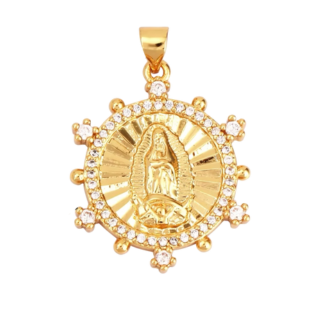 18k Gold Flat Round Virgin Pendant with Zirconia 30mm, 1pc