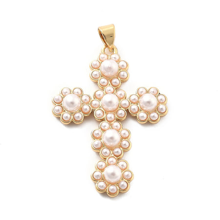 18k Gold-Plated Cross with Crystal Pearl Pendant 38mm, 1pc