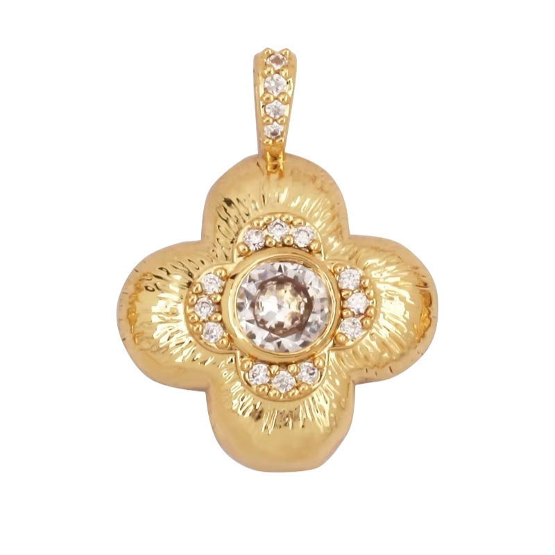 18k Gold Plated Flower Pendant With Zirconia 22mm, 1pc