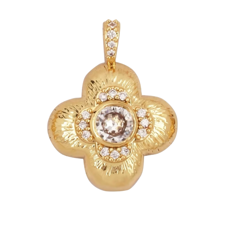 Increase quantity for 18k Gold Plated Flower Pendant With Zirconia 22mm, 1pc