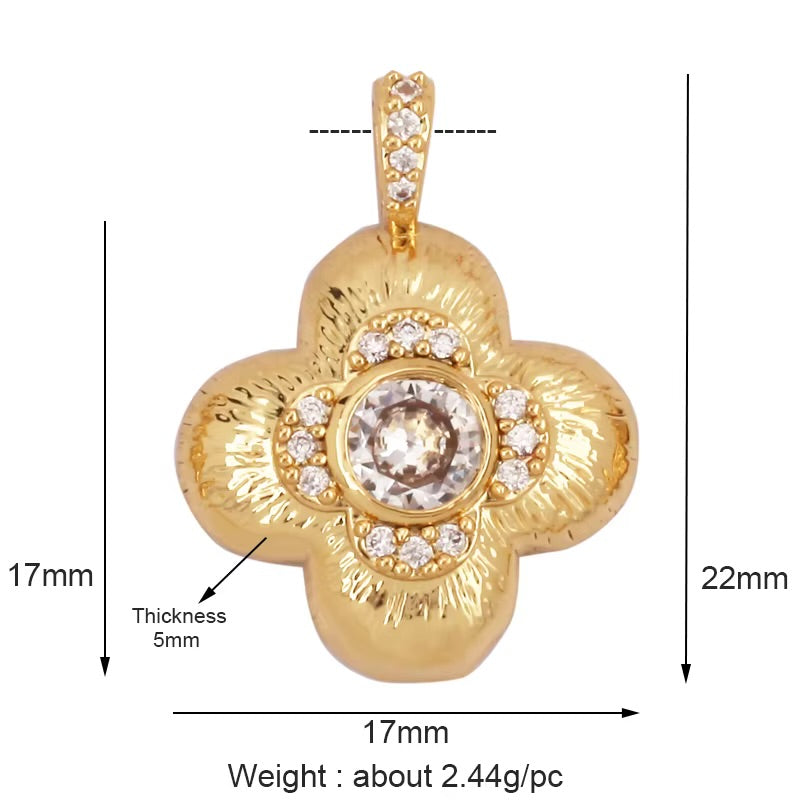 Decrease quantity for 18k Gold Plated Flower Pendant With Zirconia 22mm, 1pc