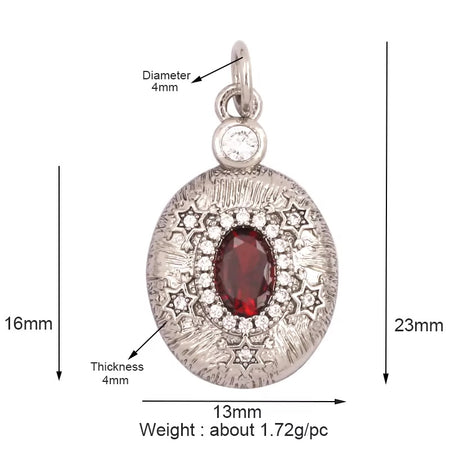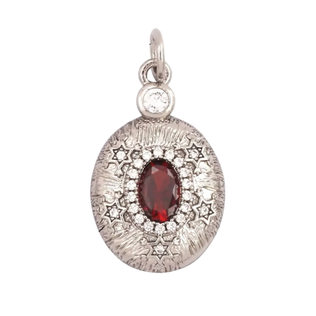 18k Silver Plated Oval Pendant With Red Zirconia 23mm, 1pc