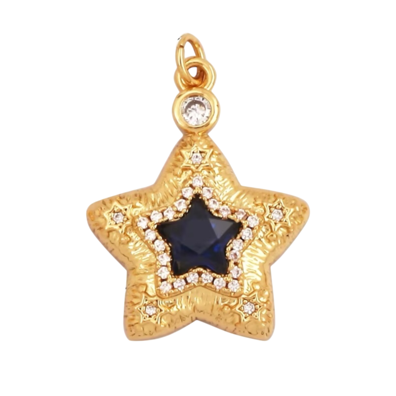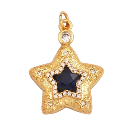 18k Gold Plated Star Pendant With Blue Zirconia 24mm, 1pc