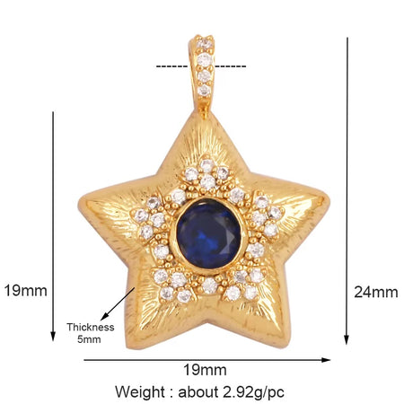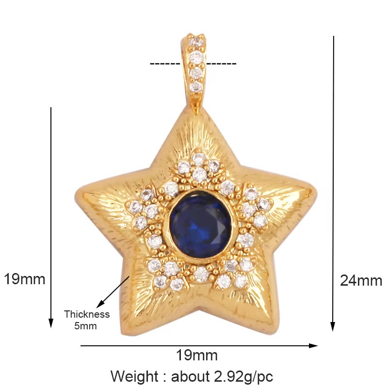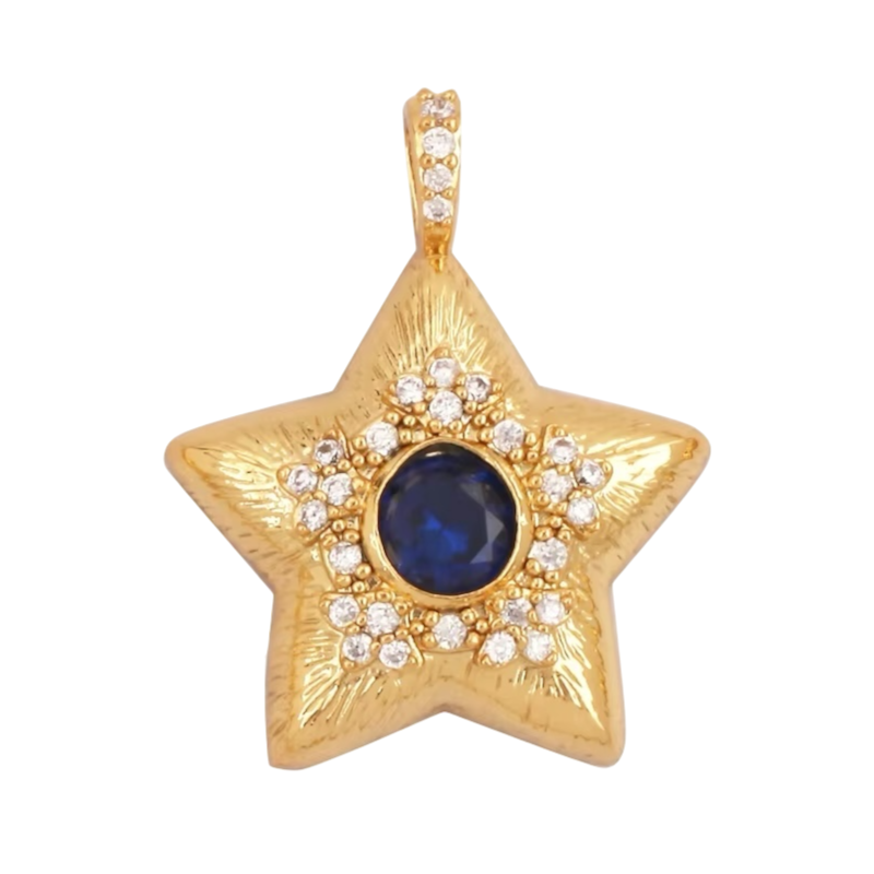 18k Gold Plated Star Pendant With Blue Zirconia 24mm, 1pc
