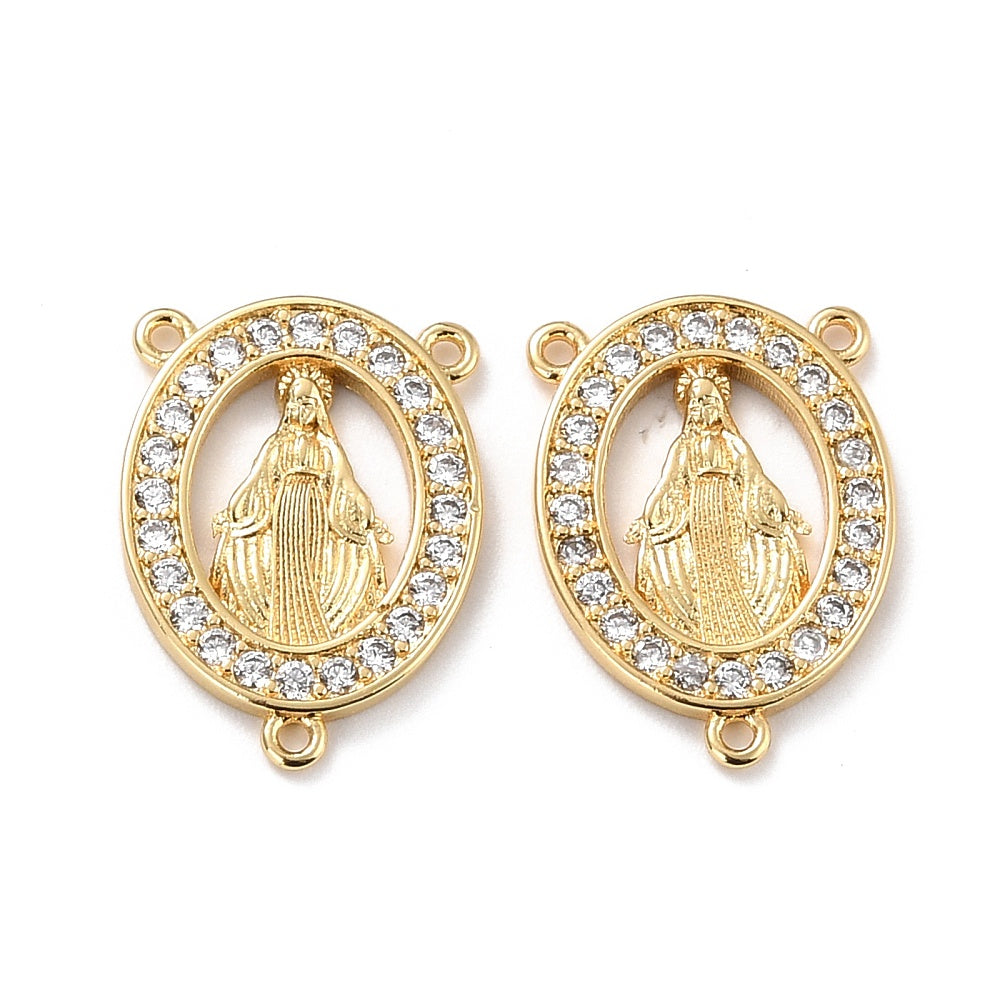 18k Gold Plated Virgin Rosary Connector with Zirconia 22mm, 1pc