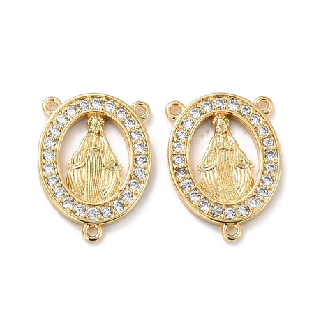 Decrease quantity for 18k Gold Plated Virgin Rosary Connector with Zirconia 22mm, 1pc