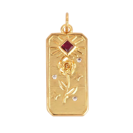 18k Gold Rectangular Flower Pendant with Magenta Zirconia 27mm, 1pc