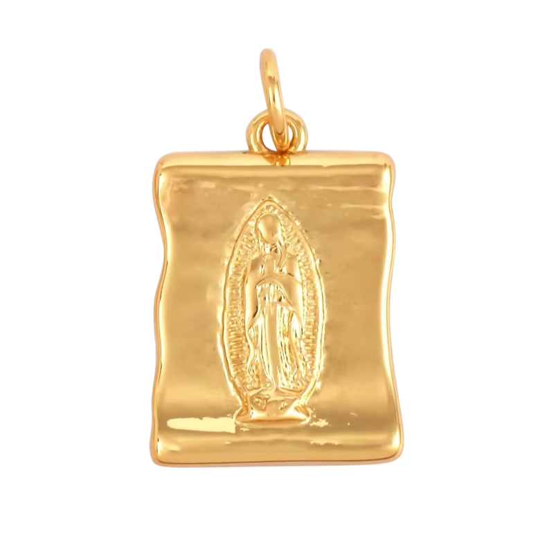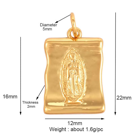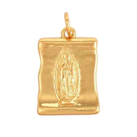 18k Gold Rectangular Guadalupe Virgin Pendant 22mm, 1pc