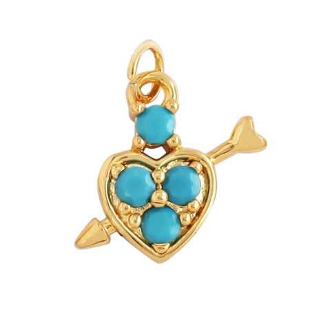 18k Gold Turquoise Heart Pendant 15mm, 1pc
