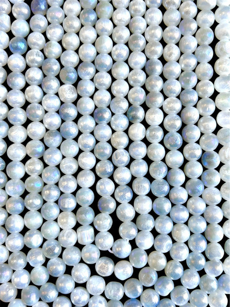 AB White Pearlized Round Jade Bead Strand, 8mm