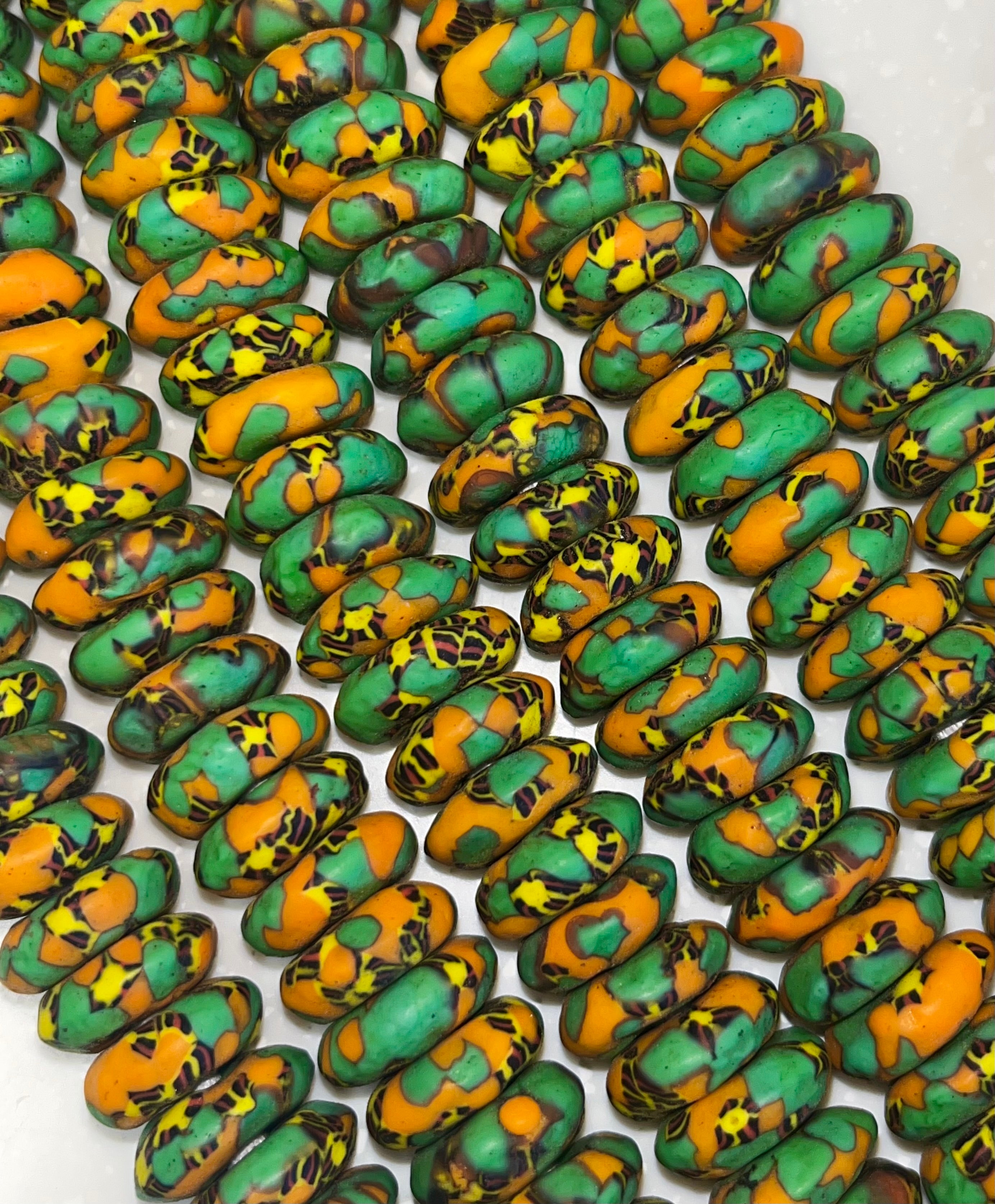 Increase quantity for African Rondelle Bead Strand, 14mm