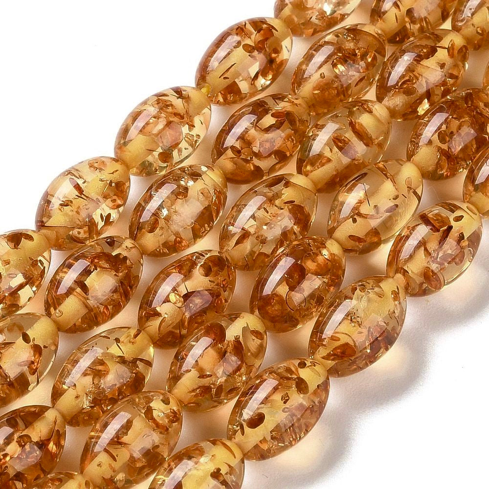 Increase quantity for Amber Oval Bead Resin Strand, 8x13mm