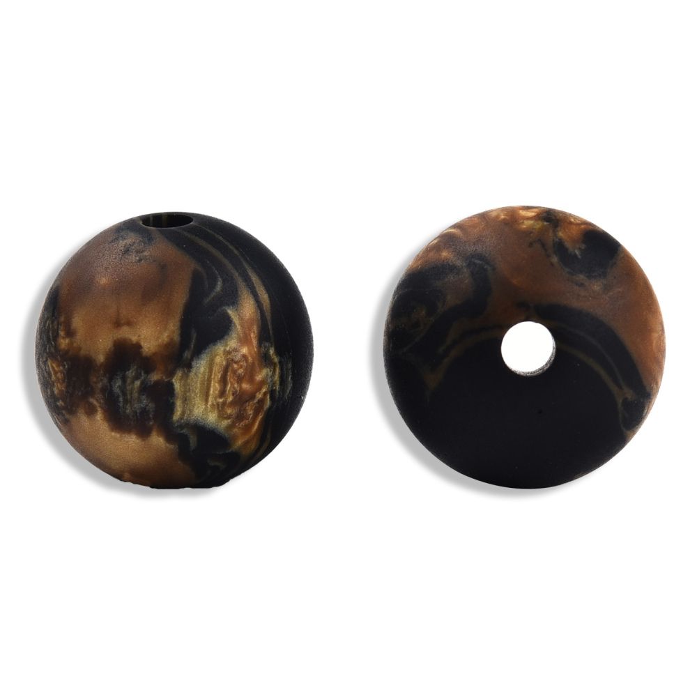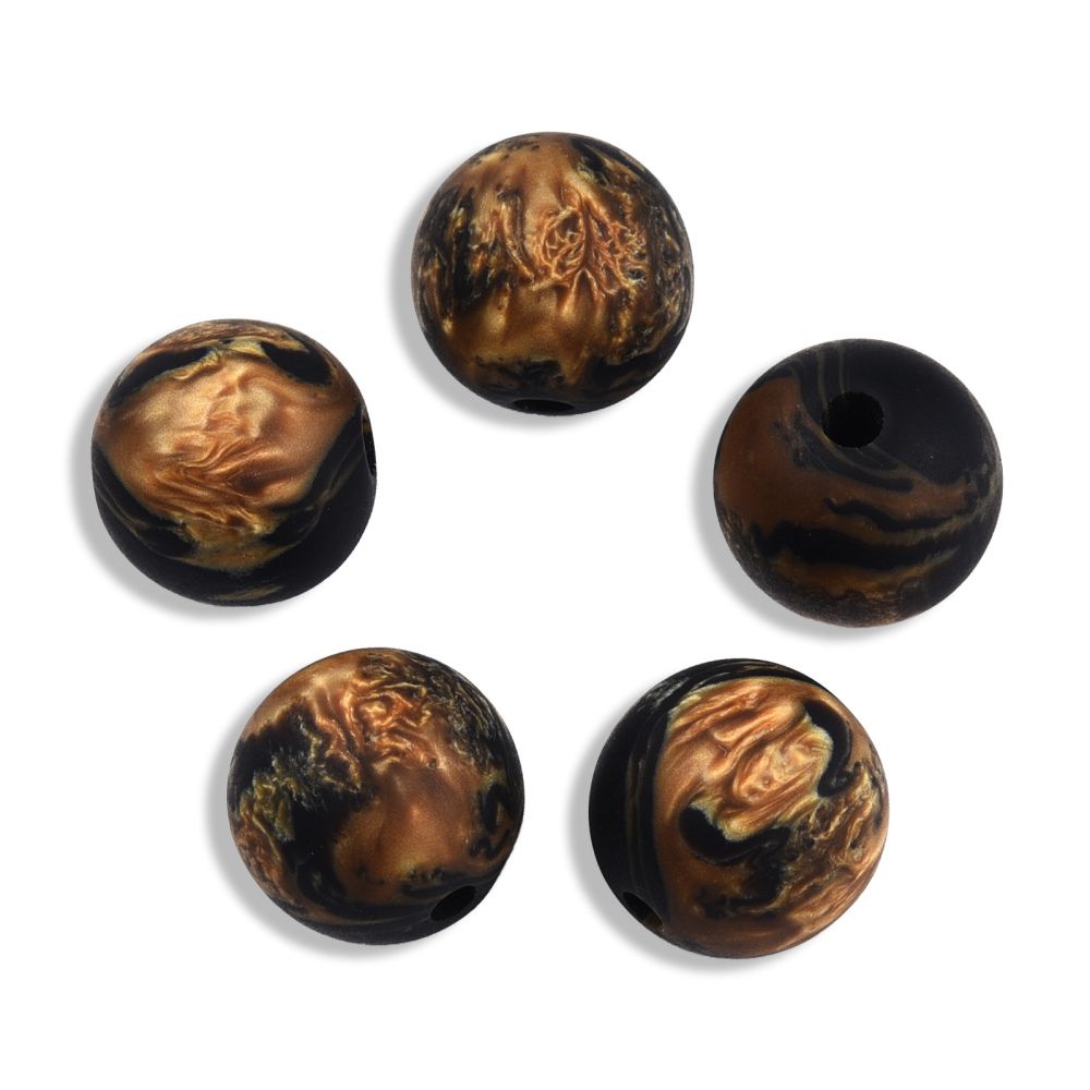 Black and Gold Round Resin Bead 14mm, 10pcs