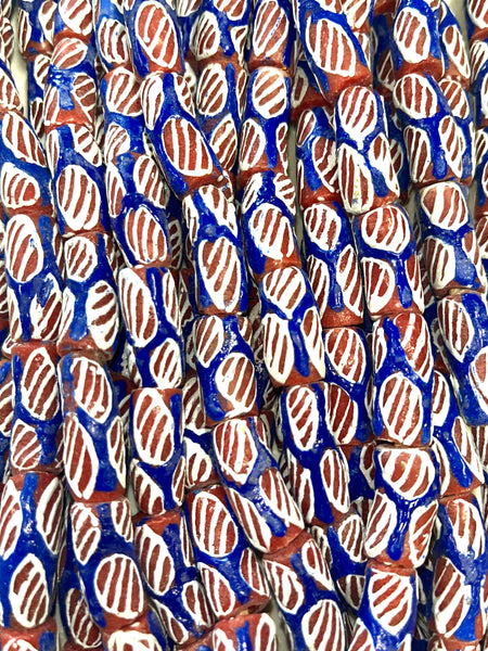Blue and Red Tube African Bead Strand, 12x27mm