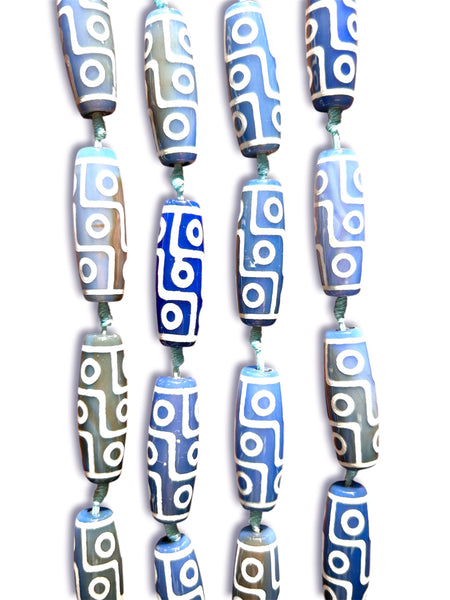 Blue Tube Tribal Agate Bead Strand, 40mm