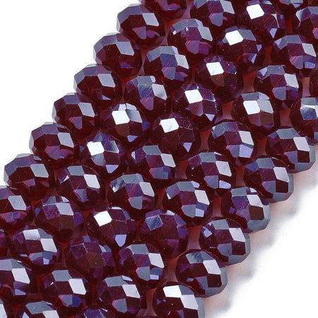 Burgundy Faceted Rondelle Crystal Bead Strand, 10mm