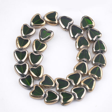 Decrease quantity for Electroplate Heart Bead Glass Strand, 10mm
