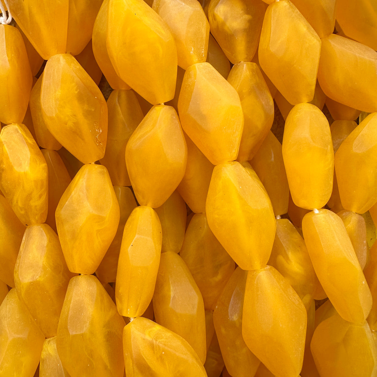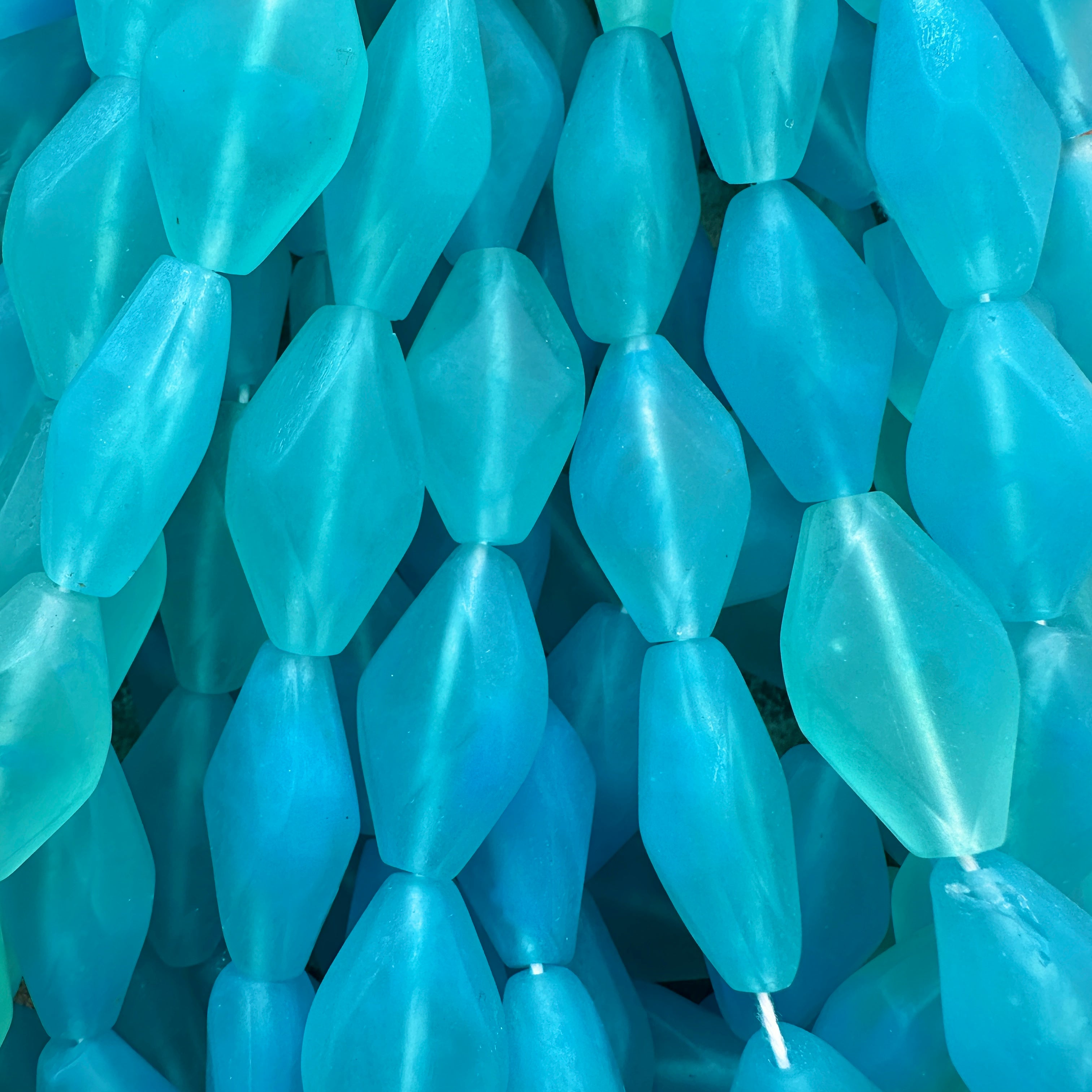 Faceted Bicone Frosted Resin Bead Strand, 35mm