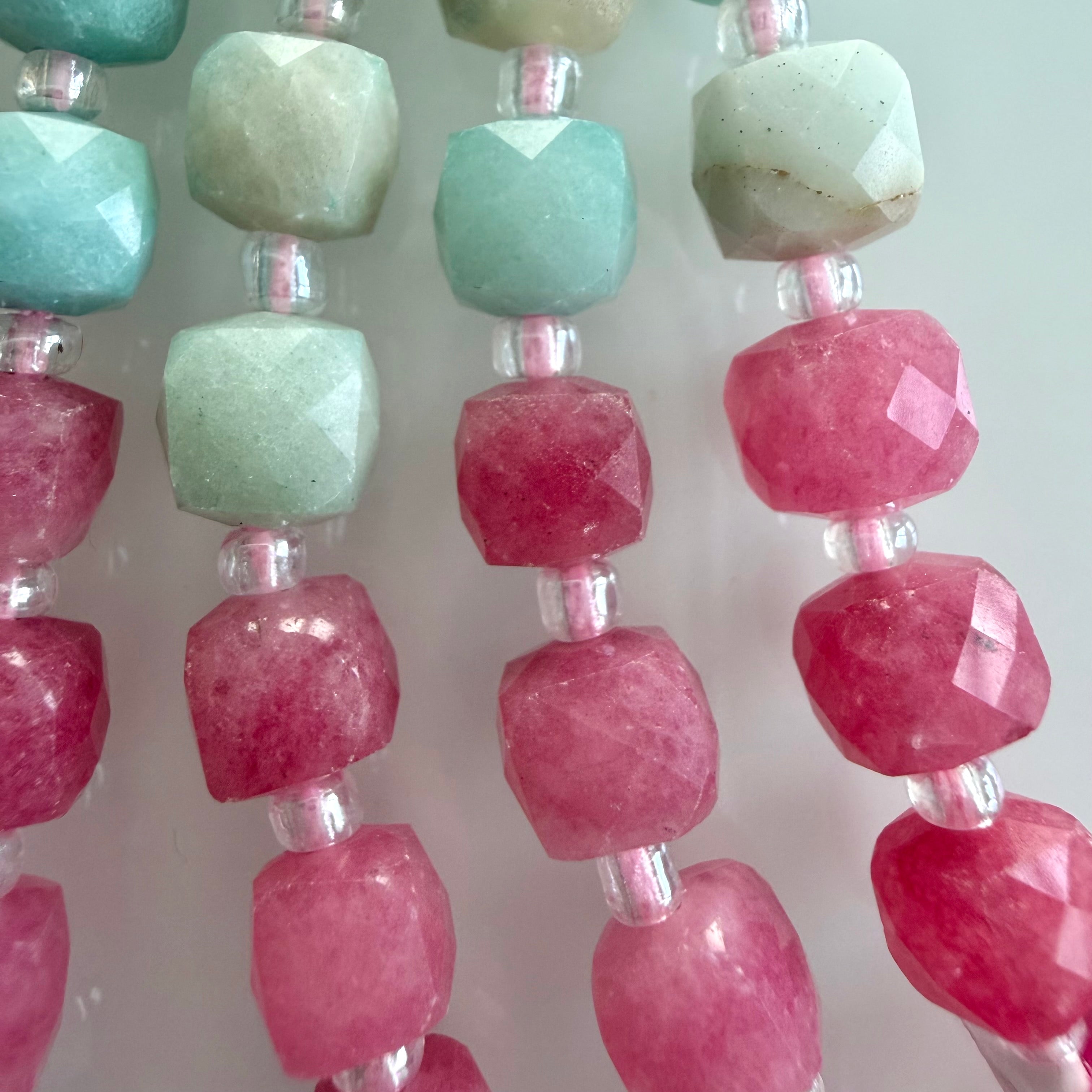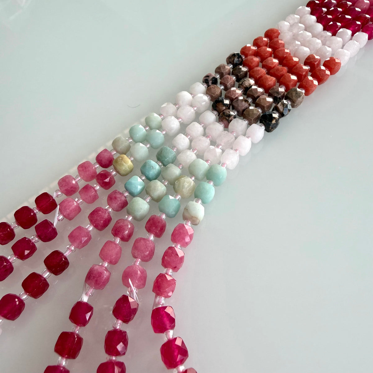 Faceted Gemstone Cube Bead with Gradient Tones 8mm Strand