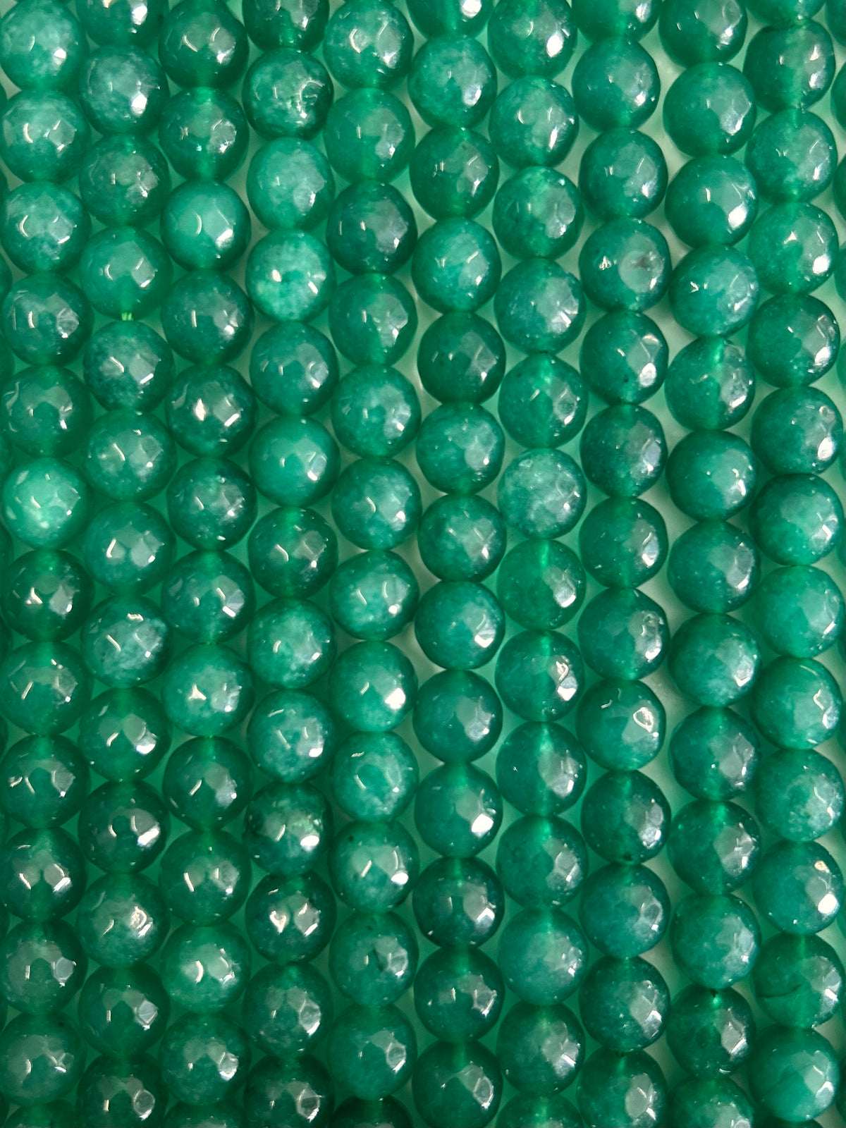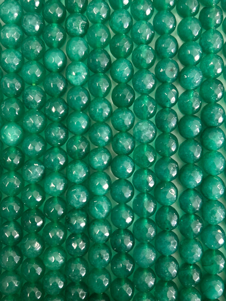 Increase quantity for Faceted Green Round Jade Bead Strand, 10mm