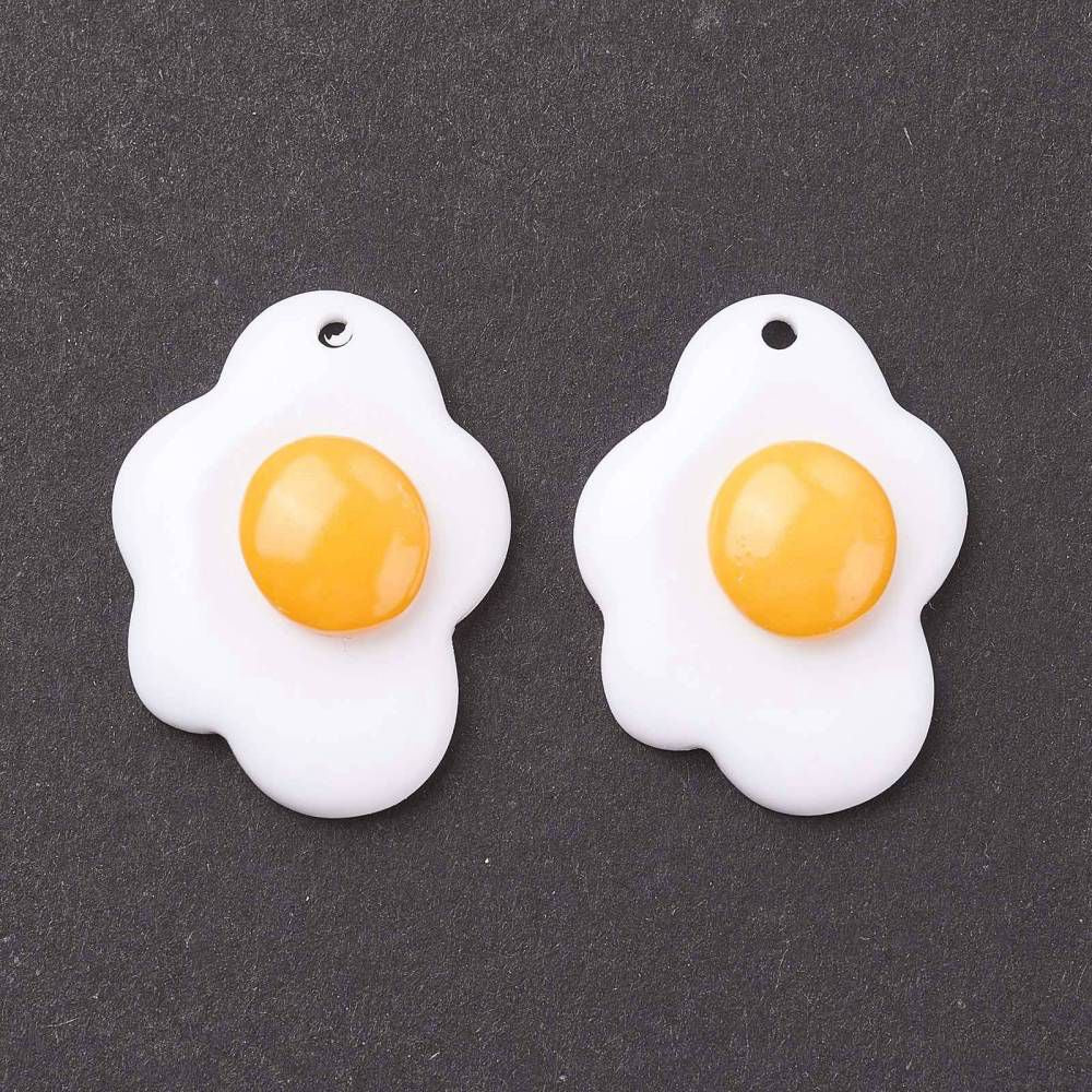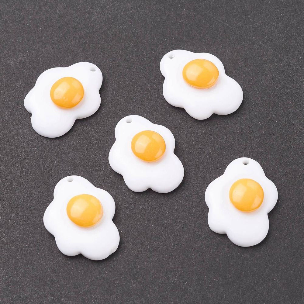 Fried Egg Resin Pendant 27mm, 4pcs