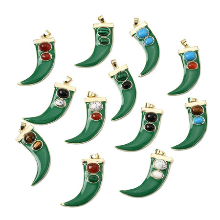 Increase quantity for Gemstone Pendants, Enamel Horn Charms, Real 18K Gold-Filled, 43mm,1pc