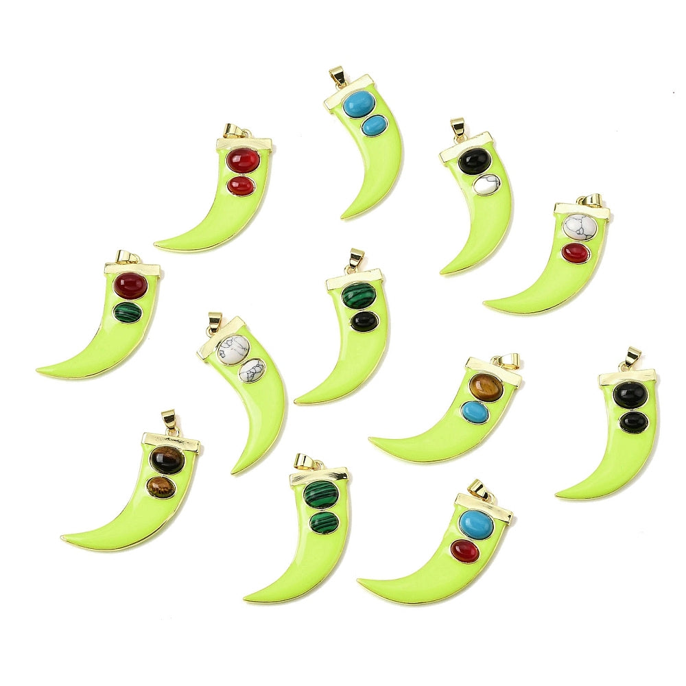 Gemstone Pendants, Enamel Horn Charms, Real 18K Gold-Filled, 43mm,1pc