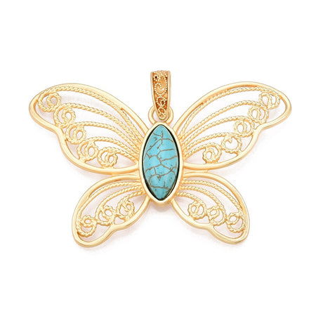 Gold-Filled Butterfly Shape Pendant with Howlite Stone, 1pc