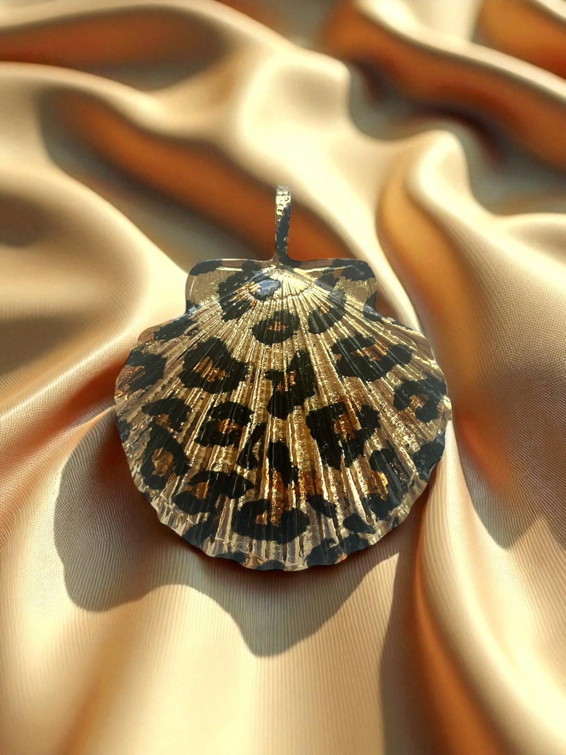 Increase quantity for Gold Plated Animal Print Shell Pendant 65mm, 1pc