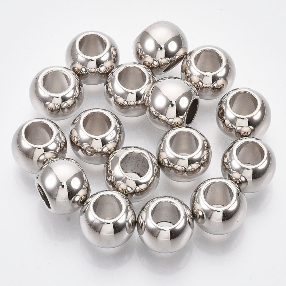 Large Hole Silver Round Beads 11mm, 25pcs