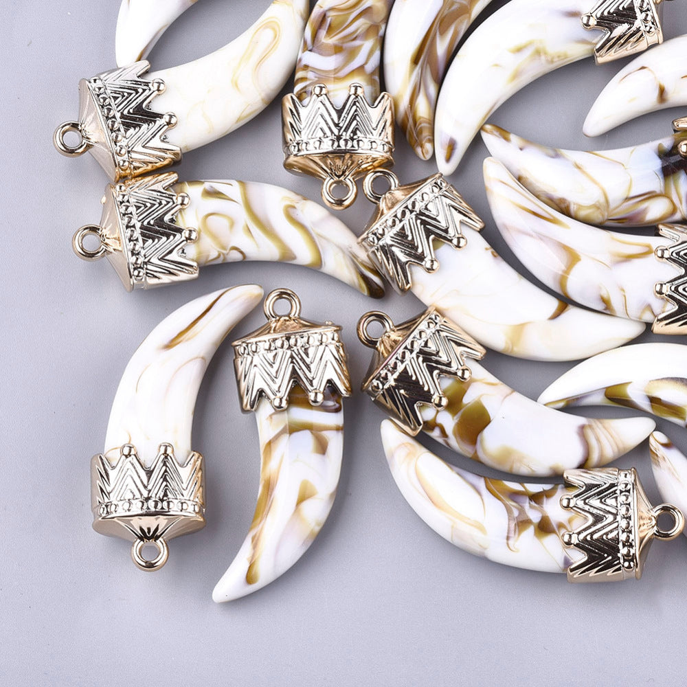Marbled Beige Horn Acrylic Pendant 56mm, 2pcs