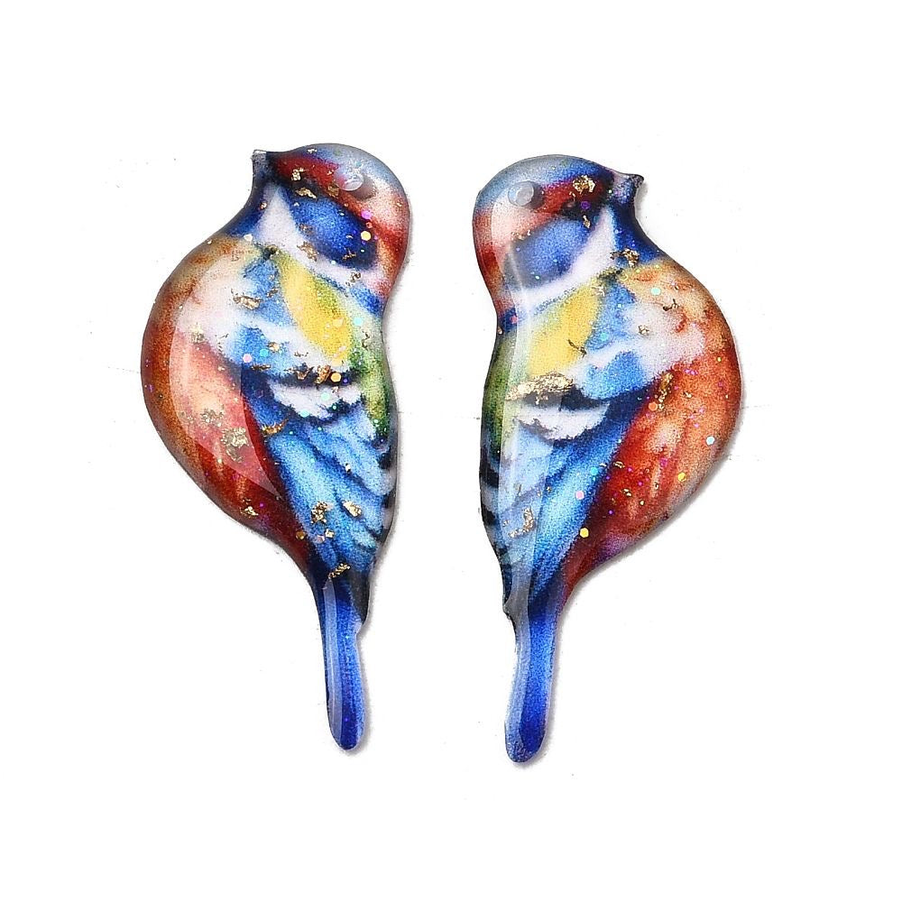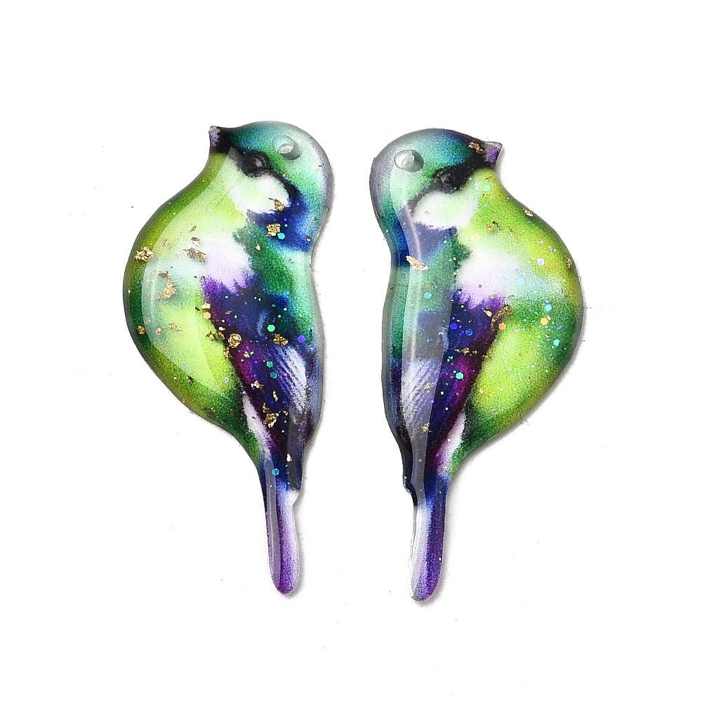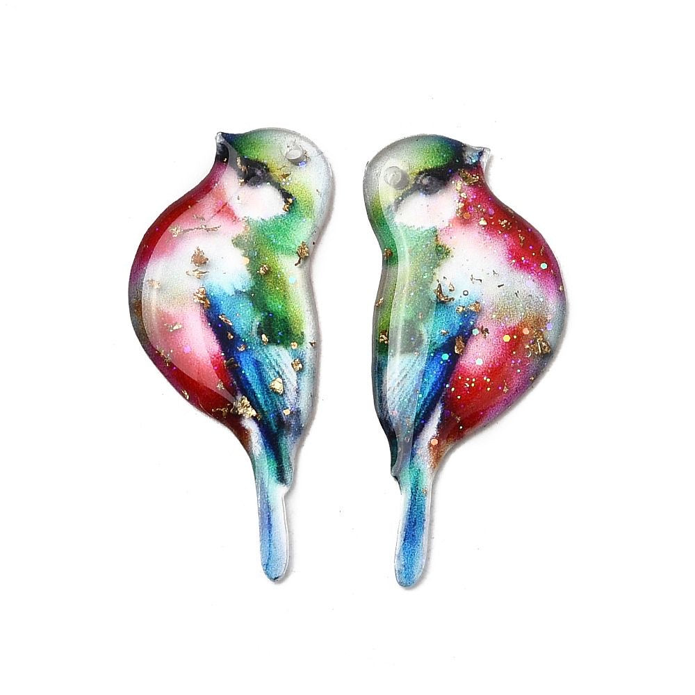 Multicolor Resin Bird Pendant 30mm, 2pcs