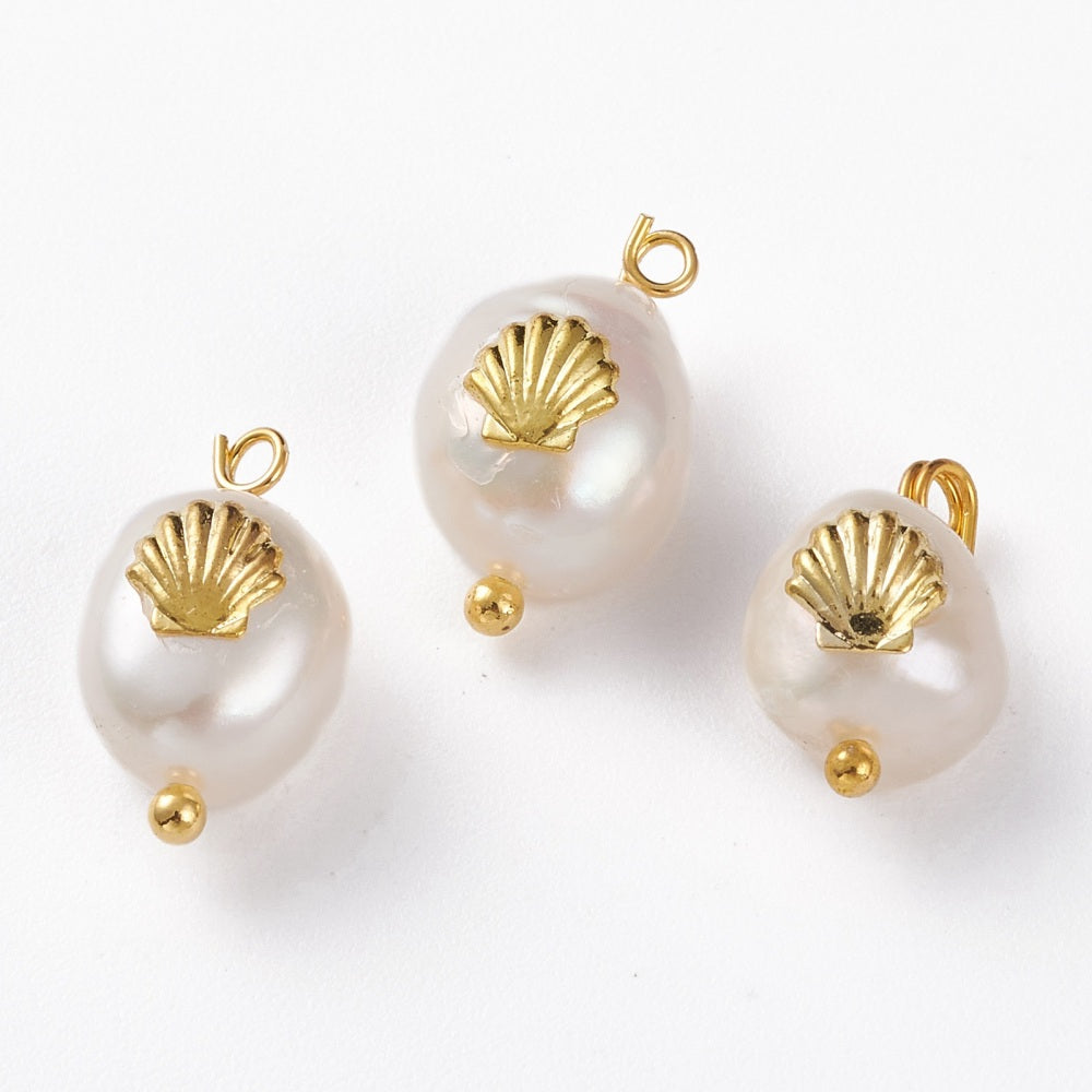 Natural Pearl Pendant with Gold Shell 13mm, 4pcs