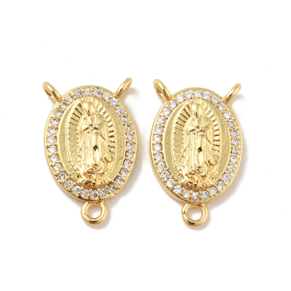 Oval Guadalupe Virgin Rosary Connector with Zirconia 18mm, 2pcs