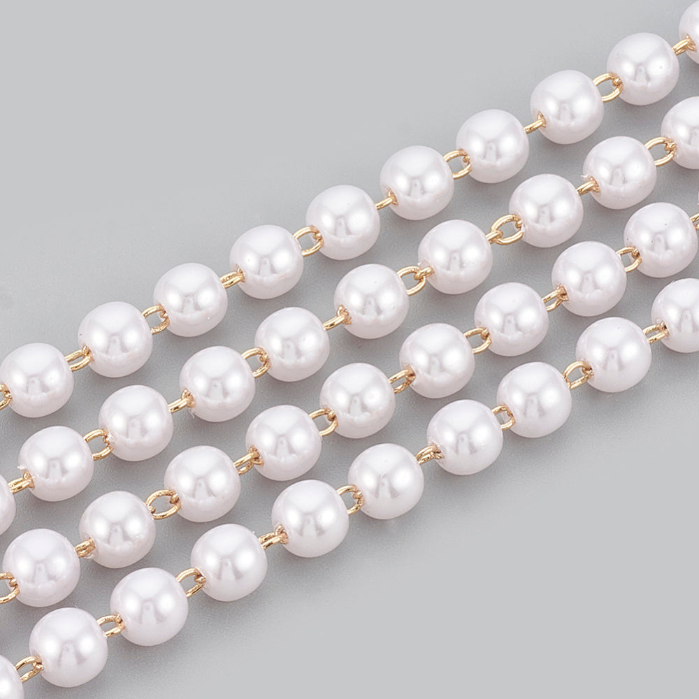 Pearl Bead Chain 6mm, 15 Foot Roll