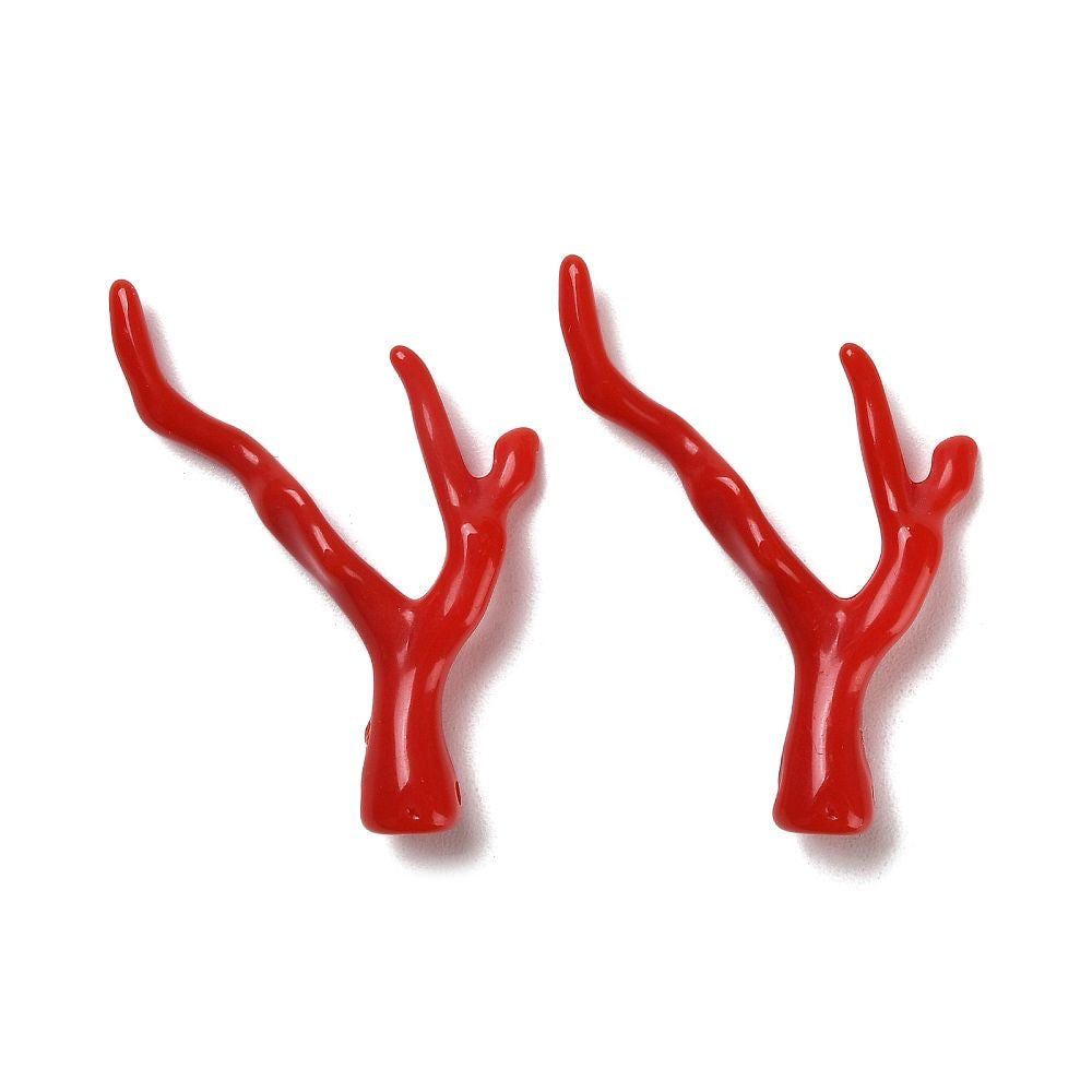 Red Coral Acrylic Branch Pendant 46mm, 10pcs