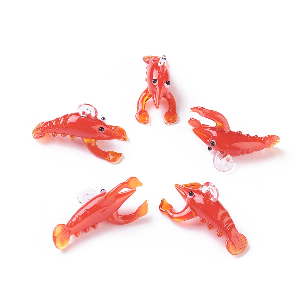Red Lobster Lampwork Pendant 32mm, 1pc