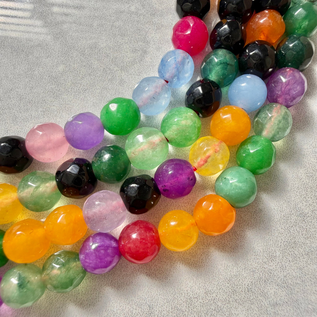 Increase quantity for Round Faceted Multicolor Jade Bead 6mm Strand