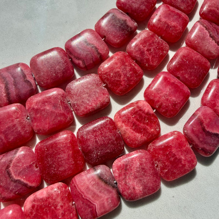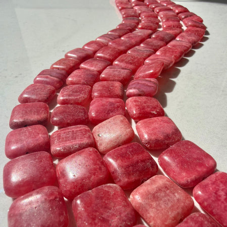 Increase quantity for Square Red Jade 20mm Bead Strand