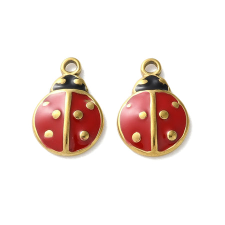 Stainless Steel Ladybug Pendant 13mm, 2pcs