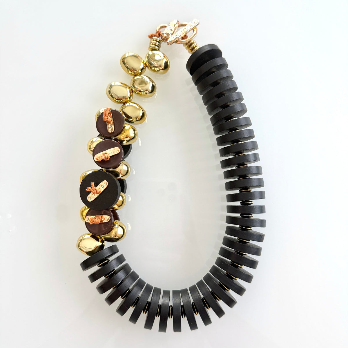 Increase quantity for Statement Necklace featuring Rondelle Wood Beads and Gold Details, 20inch
